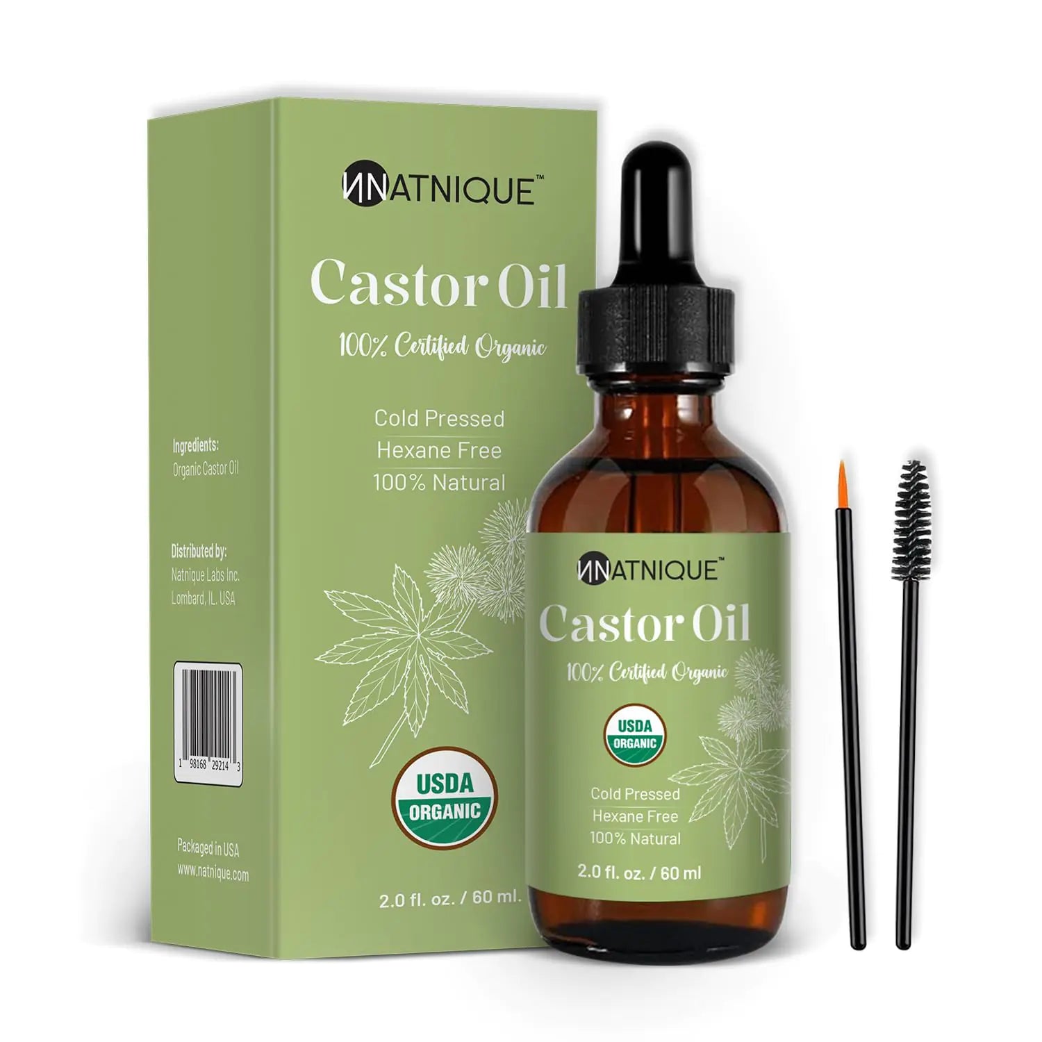 Natnique Castor Oil Organic 2oz: Unleash the power of 100% pure, USDA organic, cold-pressed castor oil. This versatile beauty treatment is designed for enhancing eyelashes, eyebrows, and skin health.