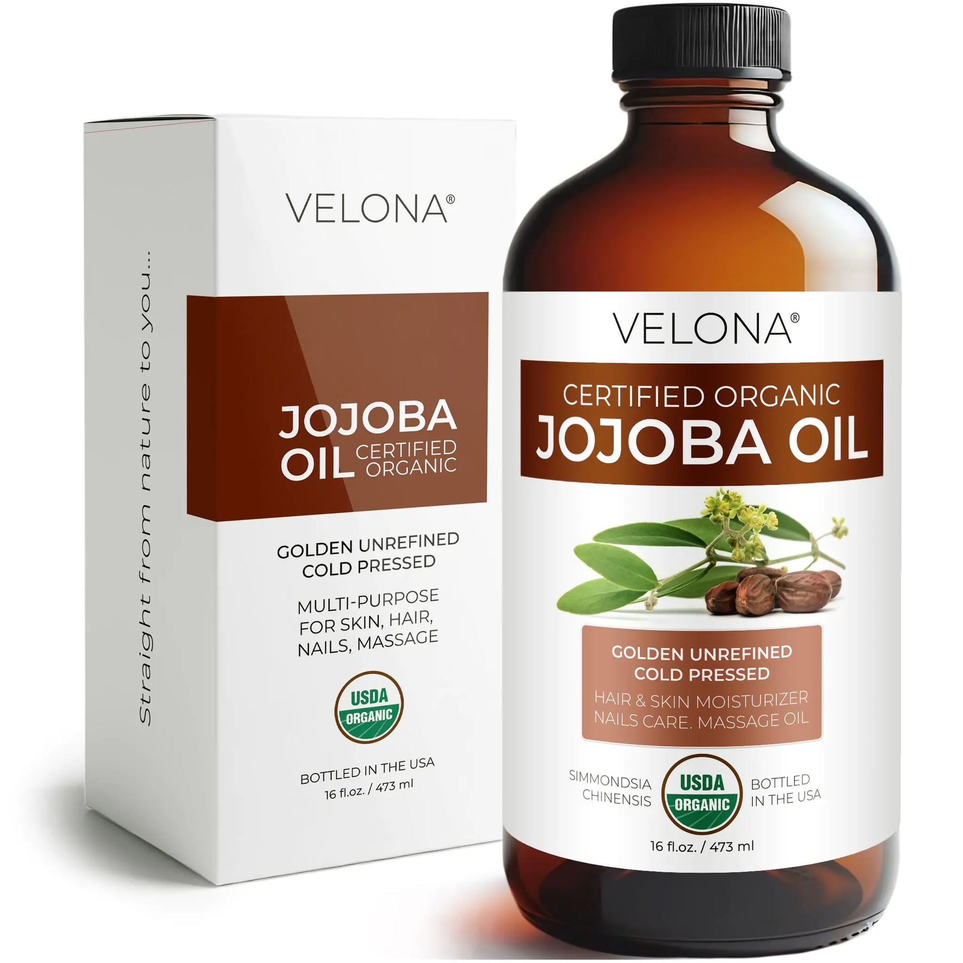 Explore Pure Elegance with Velona's USDA Certified Organic Jojoba Oil - 100% pure, all-natural, and housed in a sustainable glass bottle. Our golden jojoba oil is unrefined and cold-pressed without hexane, ensuring top-notch quality and preservation of key nutrients.